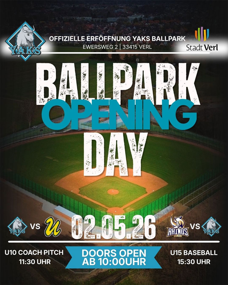 VERL YAKS BASEBALL & SOFTBALL Besuche uns im Ballpark in Verl oder vereinbare ein kostenloses Probetraining! PROBETRAINING HEIMSPIELE PROBETRAINING YAKS SPIELE BASEBALL ROCKT NEWS yaks_baseball_softball ⭐YAKS BALLPARK OPENING DAY⭐ OFFIZIELLE ERÖFFNUNG ⚾ BASEBALL NRW LIGA ⚾ Verl Yaks @ Cardinals Colog 🔥 U12 BASEBALL 2026! Saison Start 2026 - U12 Land ⚾ YAKS I starten holprig in die Baseball NRW LIGA ⚾ U15 startet mit überzeugendem Auftritt in die Sa 🥎 Welcome, NRW LIGA! ⭐️ Softballerinnen starten mi 🔥 BASEBALL IS BACK! Saison Start 2026 - U15 Baseb 🔥 BASEBALL IS BACK! Saison Start 2026 - Baseball 🔥 SOFTBALL IS BACK! Saison Start 2026 - Softball ❤️Wir wissen und schätzen, woher wir kommen und ma BIG UP an unsere Spielerinnen und Spieler, die ges ⭐CONGRATZ, KIDS!⭐ Wir gratulieren unseren Nachwuc Lasst mal Applaus da! Wir freuen uns total, unser Yessa! Vitamin D, beste Vibes und endlich wieder 🥎HERZLICHEN GLÜCKWUNSCH, COACH ALEX! Wir freuen u ⭐Saison 2026⭐ Werde Teil unseres Teams und entdecke deine neue L U10 sichert sich starken dritten Platz bei der Fie ⭐️ The winner takes it all ⭐️ Im letzten Jahr hatt Instagram-Beitrag 18093640712284958 Mehr anzeigen Folge uns auf Instagram